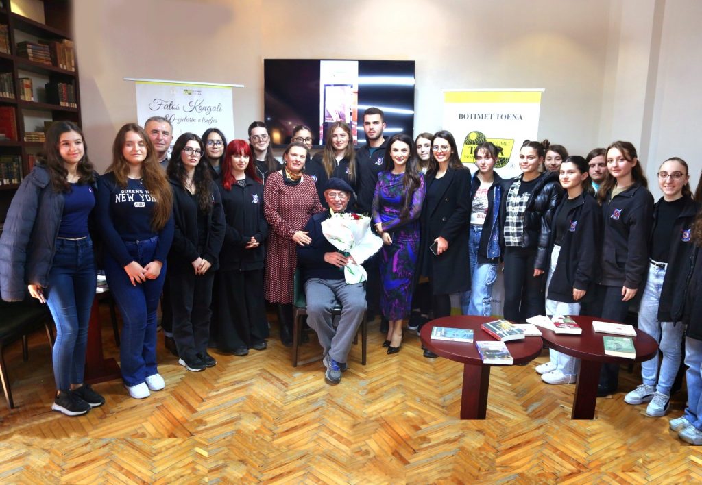 Fatos Kongoli iu përgjigj pyetjeve të të pranishmëve, duke ndarë momente të bukura nga jeta dhe veprimtaria e tij krijuese. Ky është një vit i mbushur me aktivitete letrare dhe ekspozita në nder të shkrimtarit.
