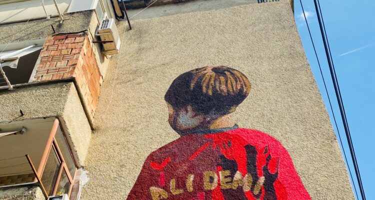 Një fëmijë futbollist, që mban fanellën me ngjyrat e kombëtares, por me mbishkrimin “Ali Demi”, emrin e Heroit të Popullit që mban lagjja ku është realizuar muralja. Numri 1 simbolizon numrin e njësisë administrative, nr 1.